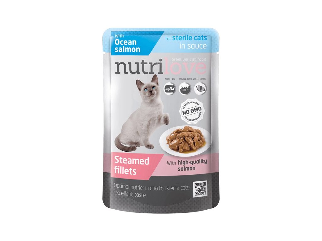 Složení: maso a výrobky živočišného původu (74 % ve filetkách), ryby a vedlejší výrobky z ryb (8 % losos ve filetkách), bílkovinné extrakty rostlinného původu, vedlejší výrobky rostlinného původu (0,4 % inulin), minerální látky, cukry.